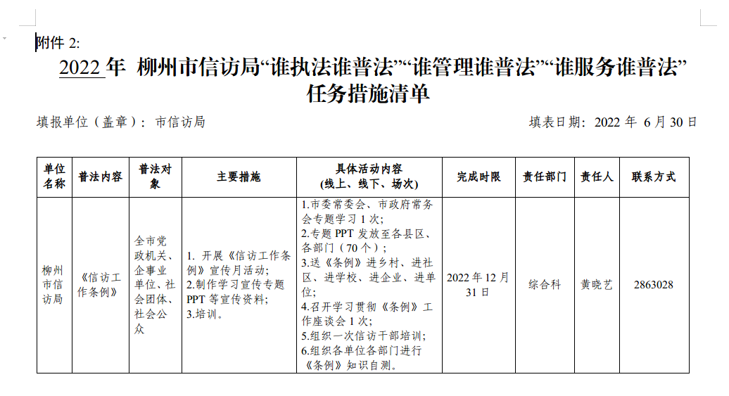 2022年柳州市信访局“谁执法谁普法”“谁管理谁普法”“谁服务谁普法” 任务措施清单