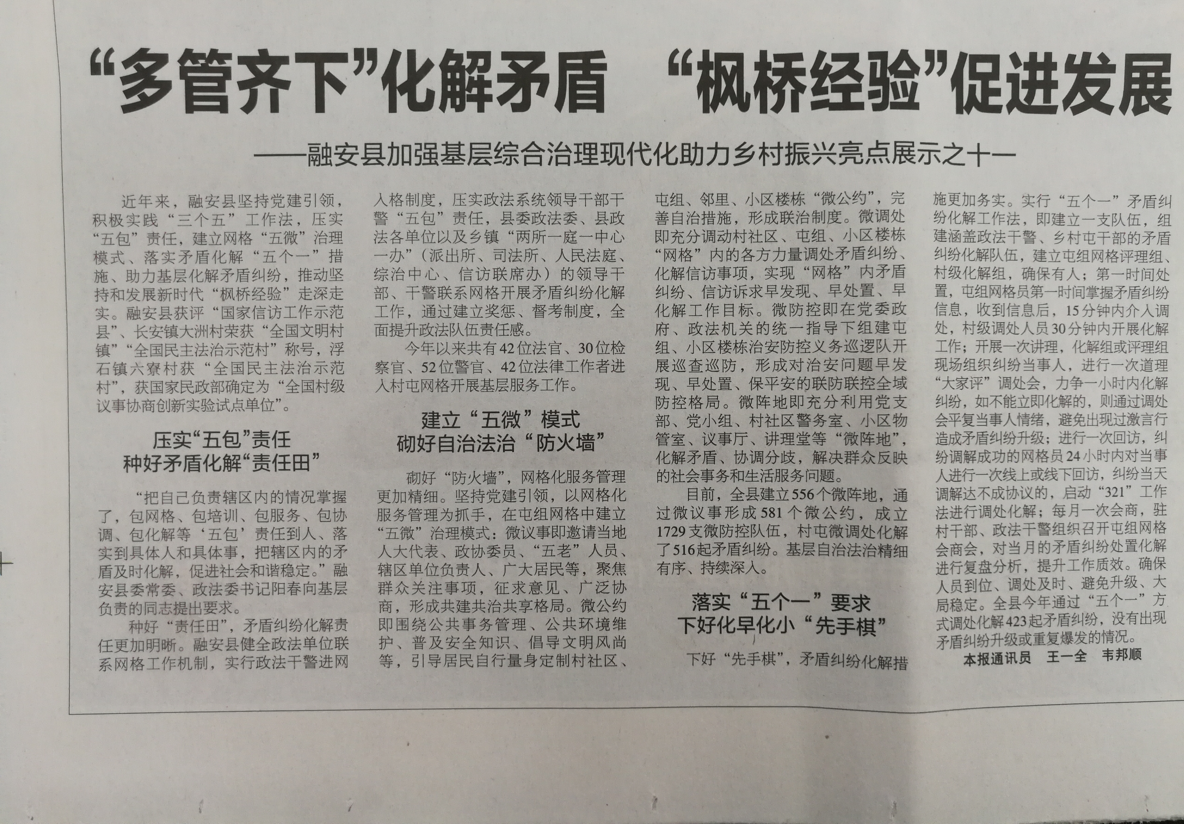 “多管齐下”化解矛盾 “枫桥经验”促进发展