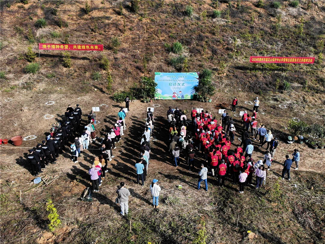 2024年3月12日时值植树节,市莲花山保护中心联合市财政局、市信访局、柳州银行、柳南街道办、中国铁塔股份有限公司柳州分公司、益启社会工作服务中心在莲花山保护范围共同开展了义务植树活动,现场共种植了枫香、甜樱桃、黄皮、山楂、柿子、枇杷等树种约2000株。