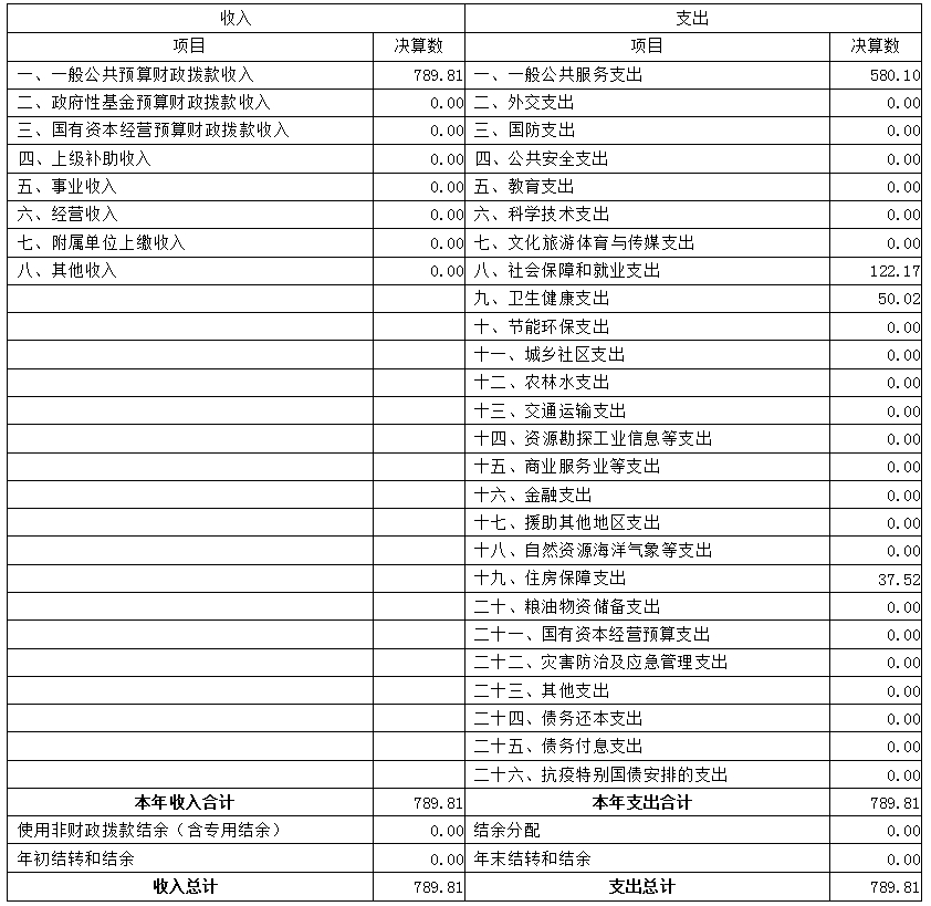 本部门2023年度一般公共预算财政拨款支出年初预算697.97 万元,支出决算789.81万元,完成年初预算的113.16%。
