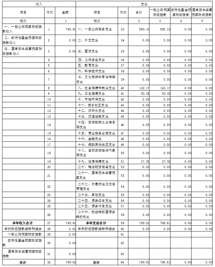 注:本表反映部门本年度一般公共预算财政拨款、政府性基金预算财政拨款和国有资本经营预算财政拨款的总收支和年末结转结余 情况。
