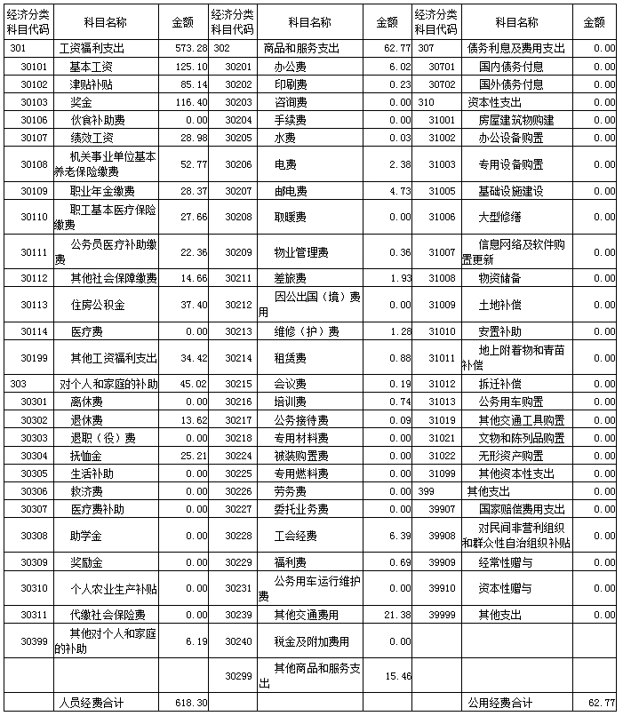 本部门2023年度一般公共预算财政拨款基本支出681.07万 元,其中:人员经费618.30万元,主要包括:基本工资、津贴补 贴、奖金、绩效工资、机关事业单位基本养老保险缴费、职业年 金缴费、职工基本医疗保险缴费、公务员医疗补助缴费、其他社 会保障缴费、住房公积金、其他工资福利支出、退休费、抚恤金、其他对个人和家庭的补助;公用经费62.77万元,主要包括: 办公费、印刷费、水费、电费、邮电费、物业管理费、差旅费、 维修(护)费、租赁费、会议费、培训费、公务接待费、工会经 费、福利费、其他交通费用、其他商品和服务支出。