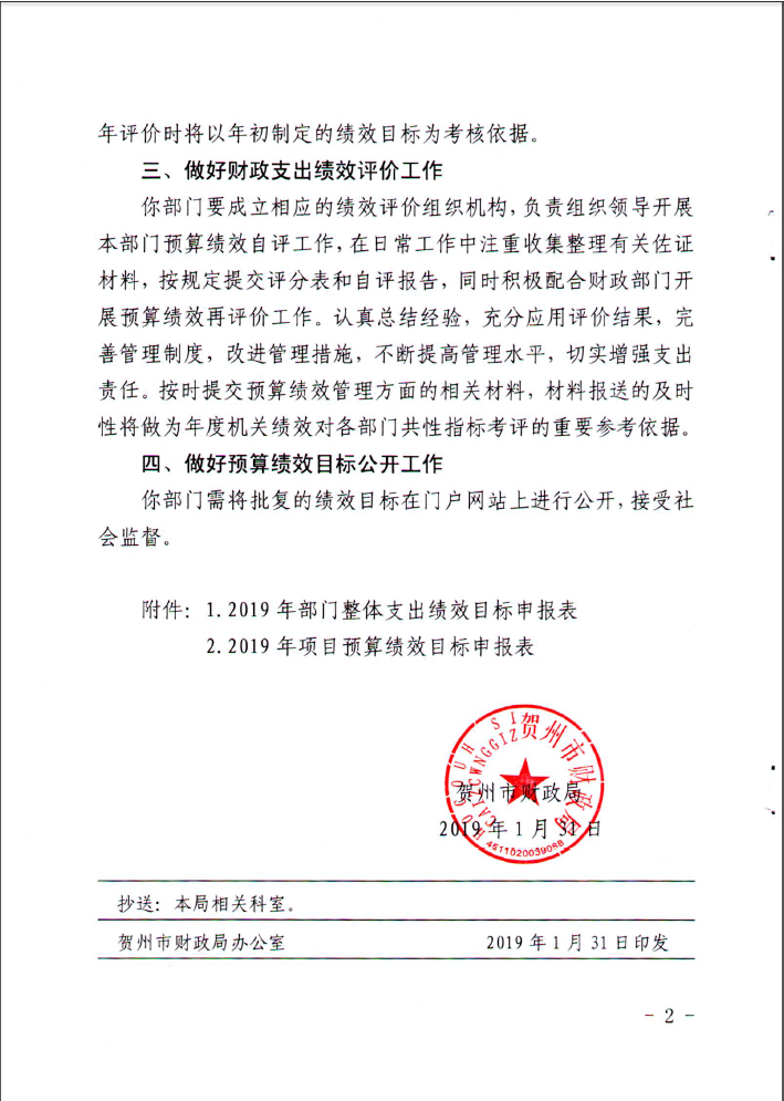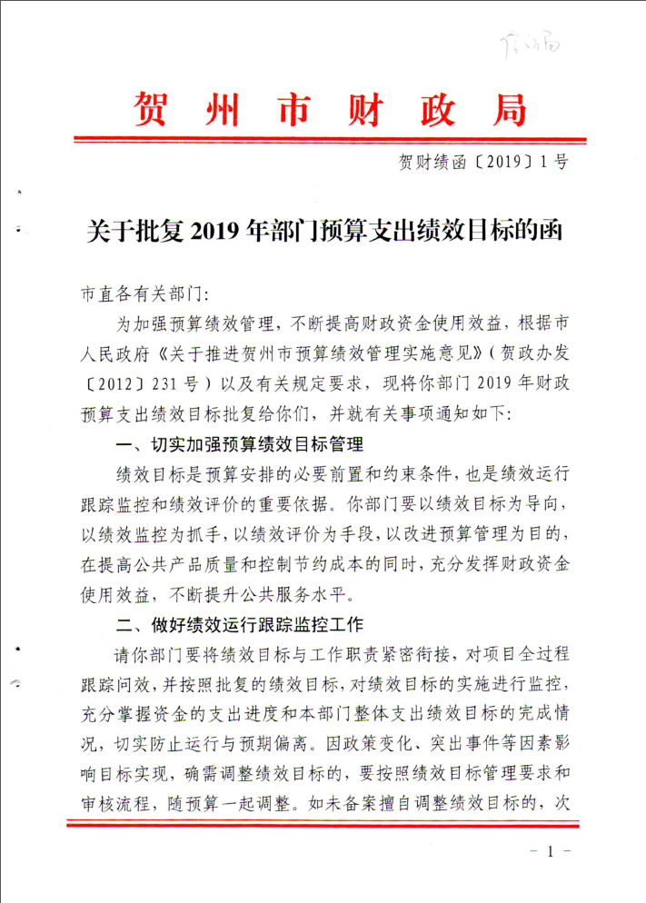 关于批复2019年部门预算支出绩效目标的函