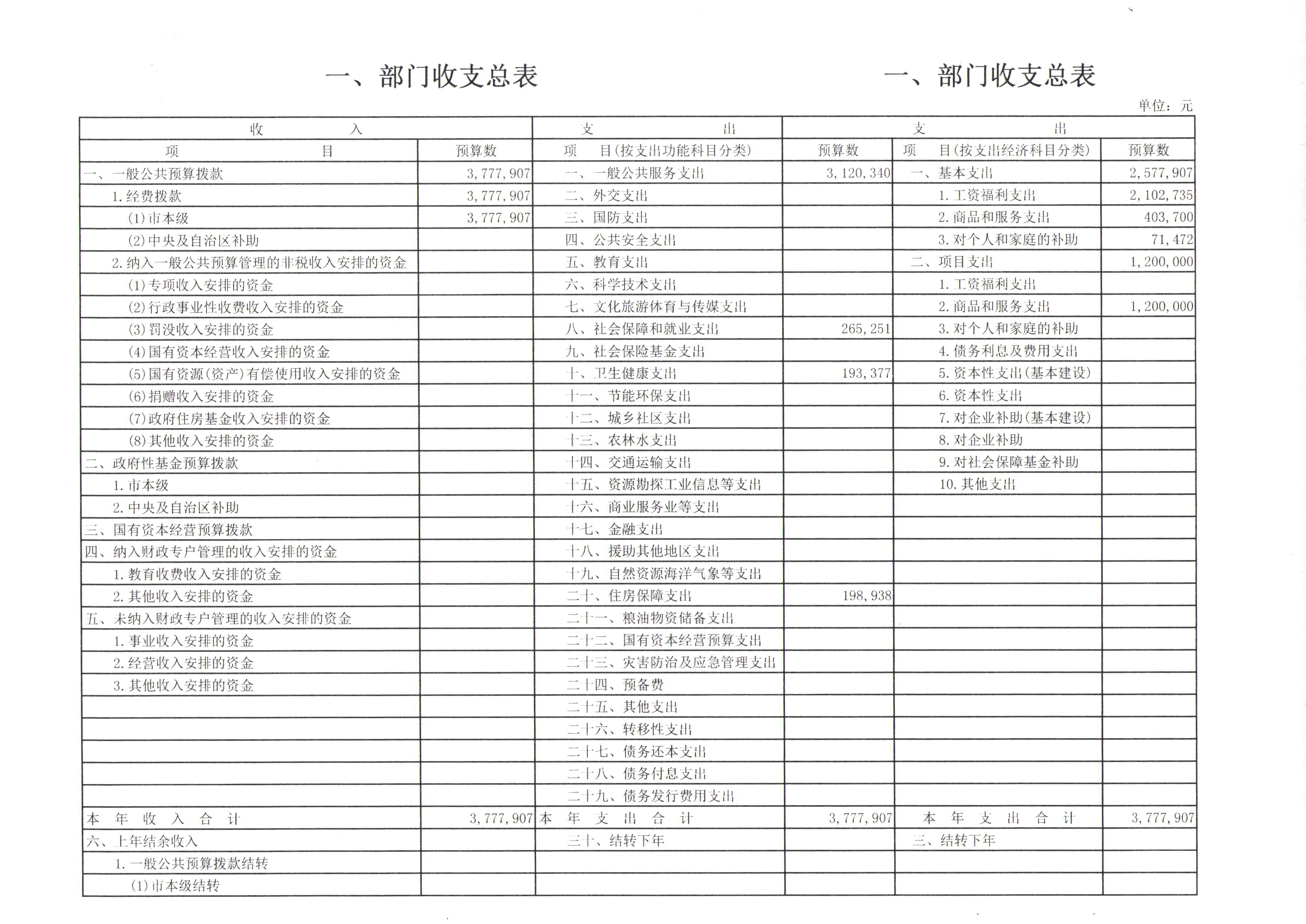 一、部门收支总表