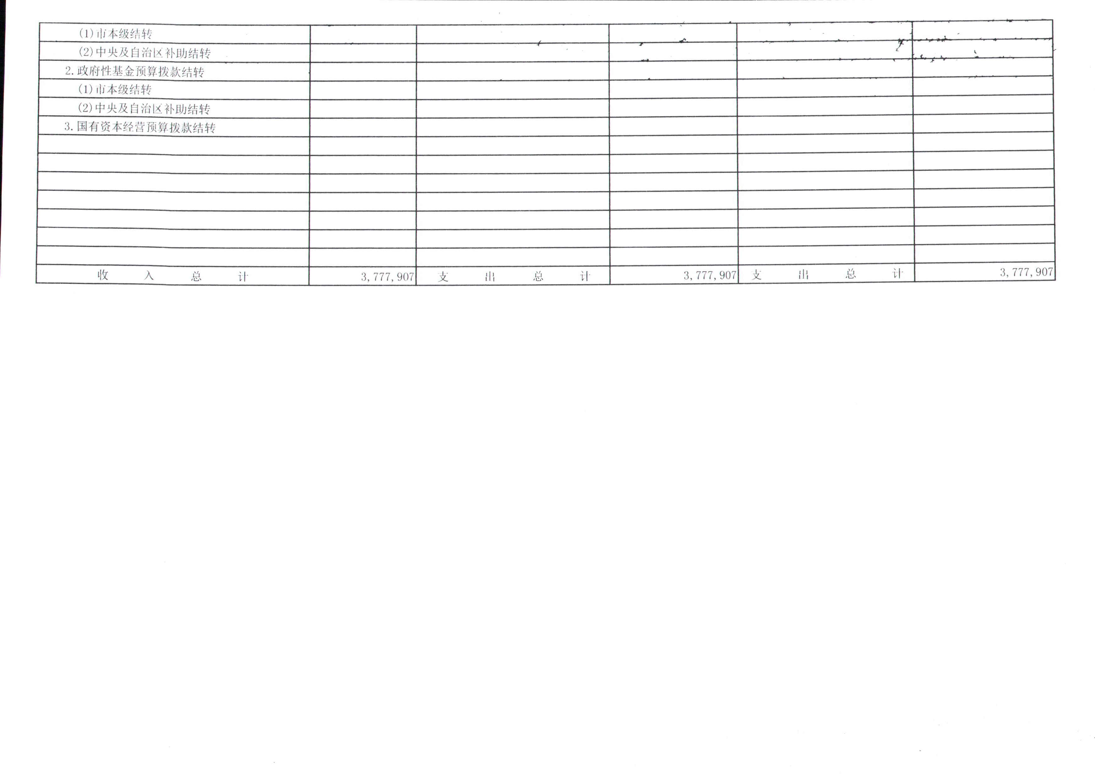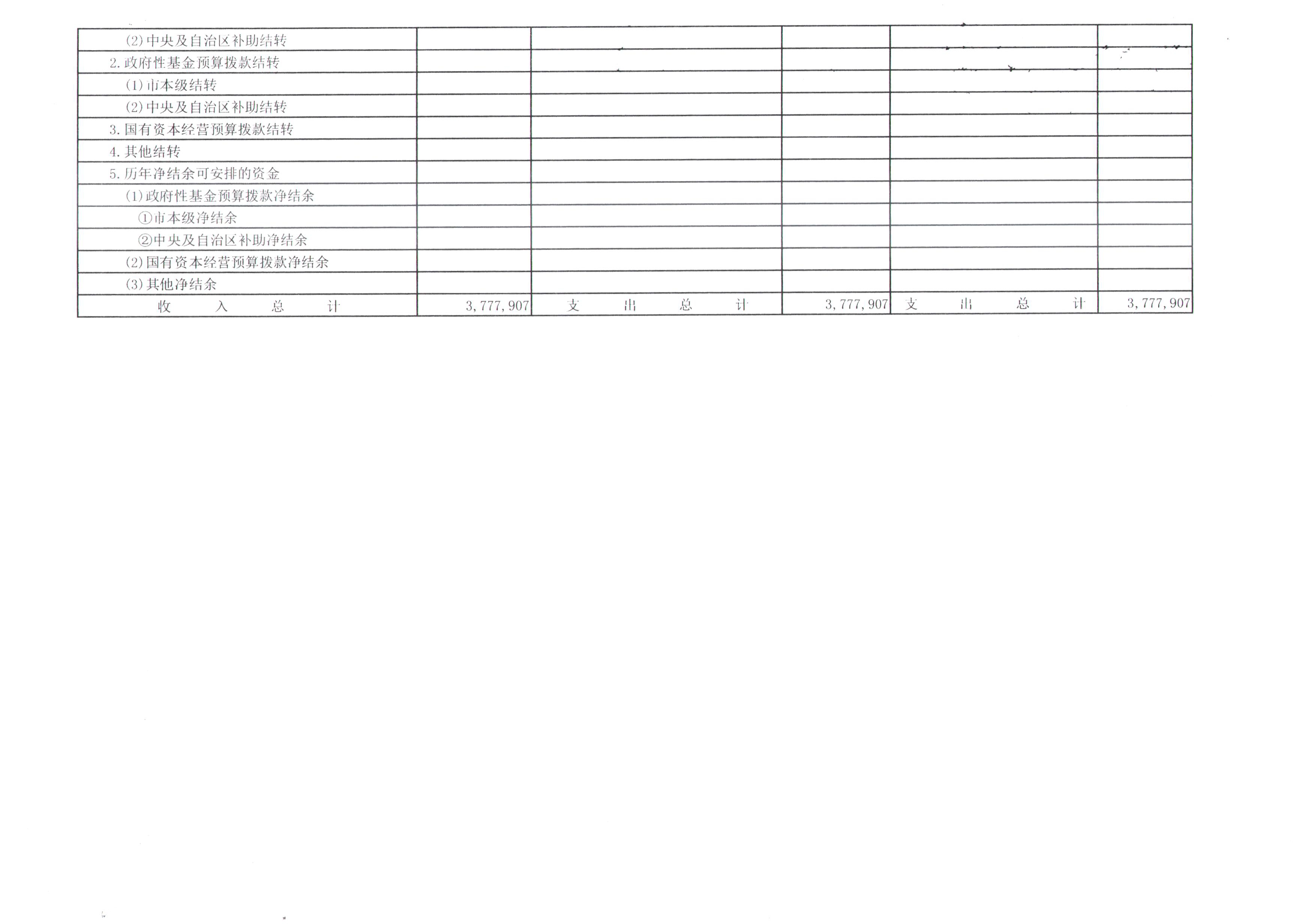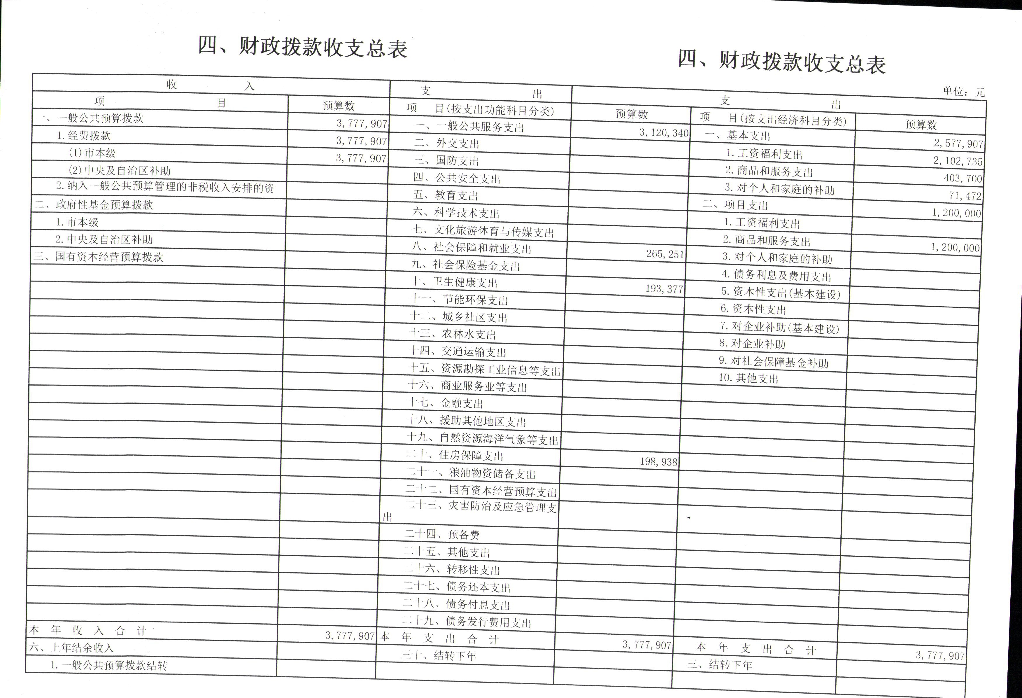 四、财政拨款收支总表