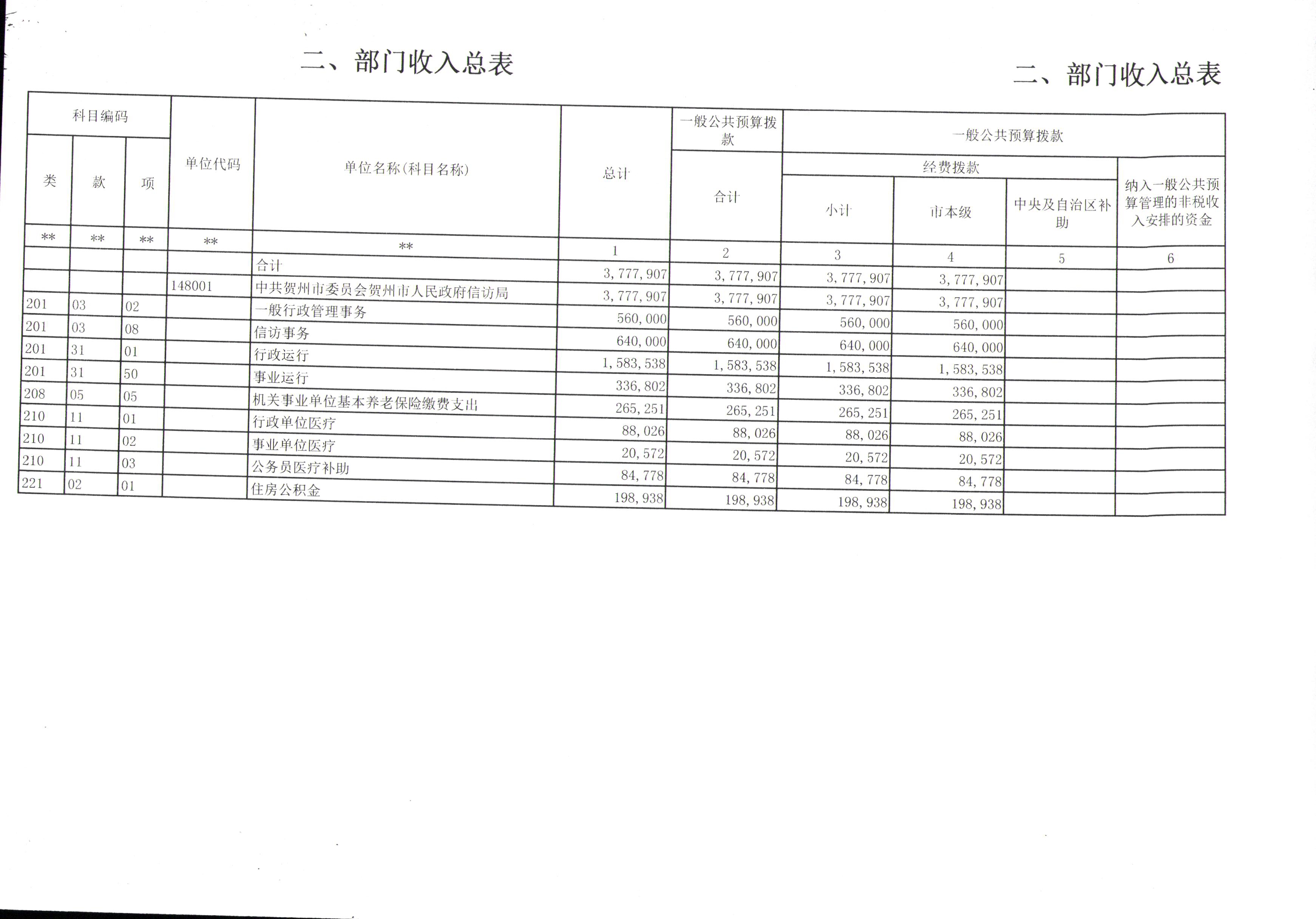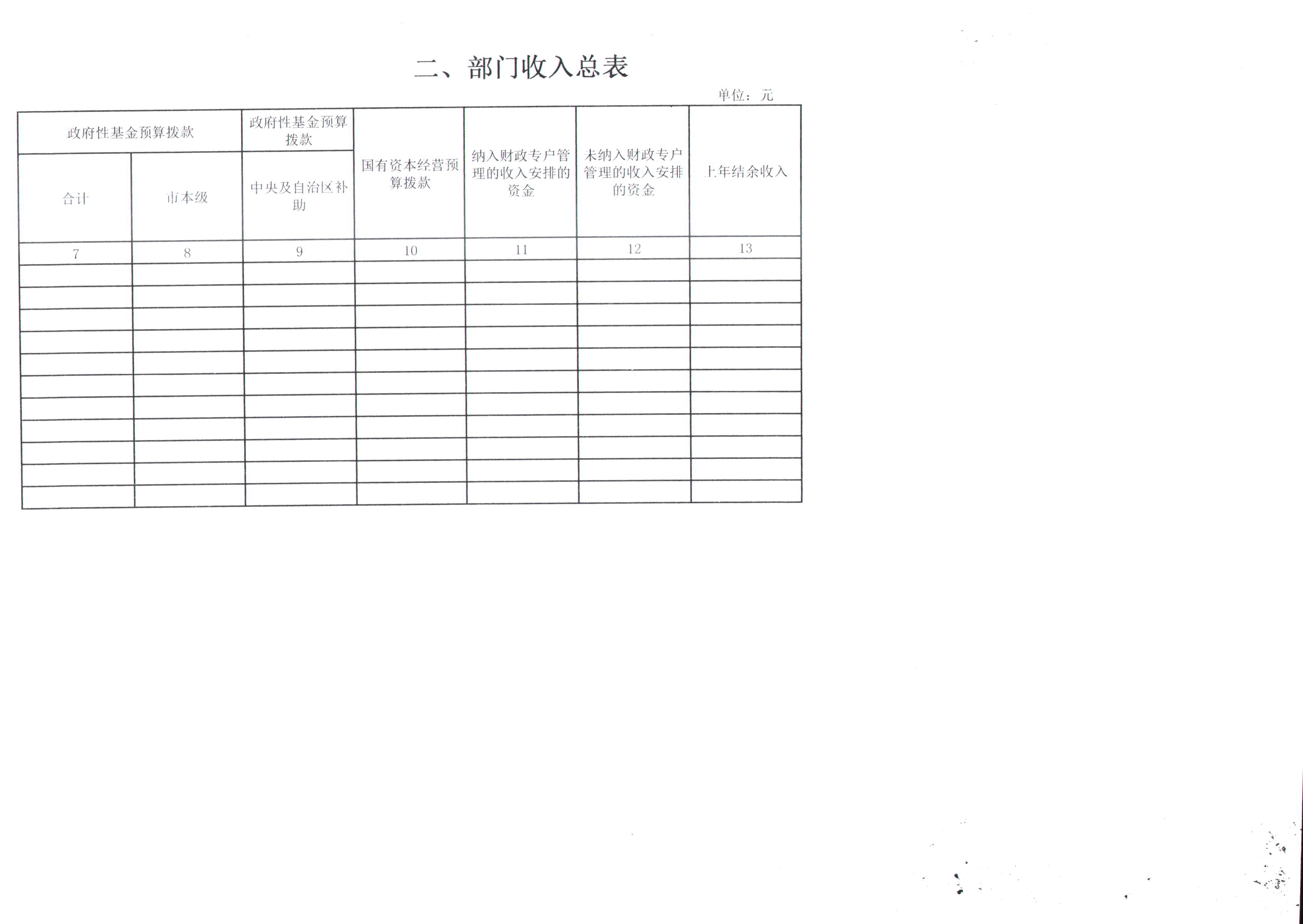 二、部门收入总表
