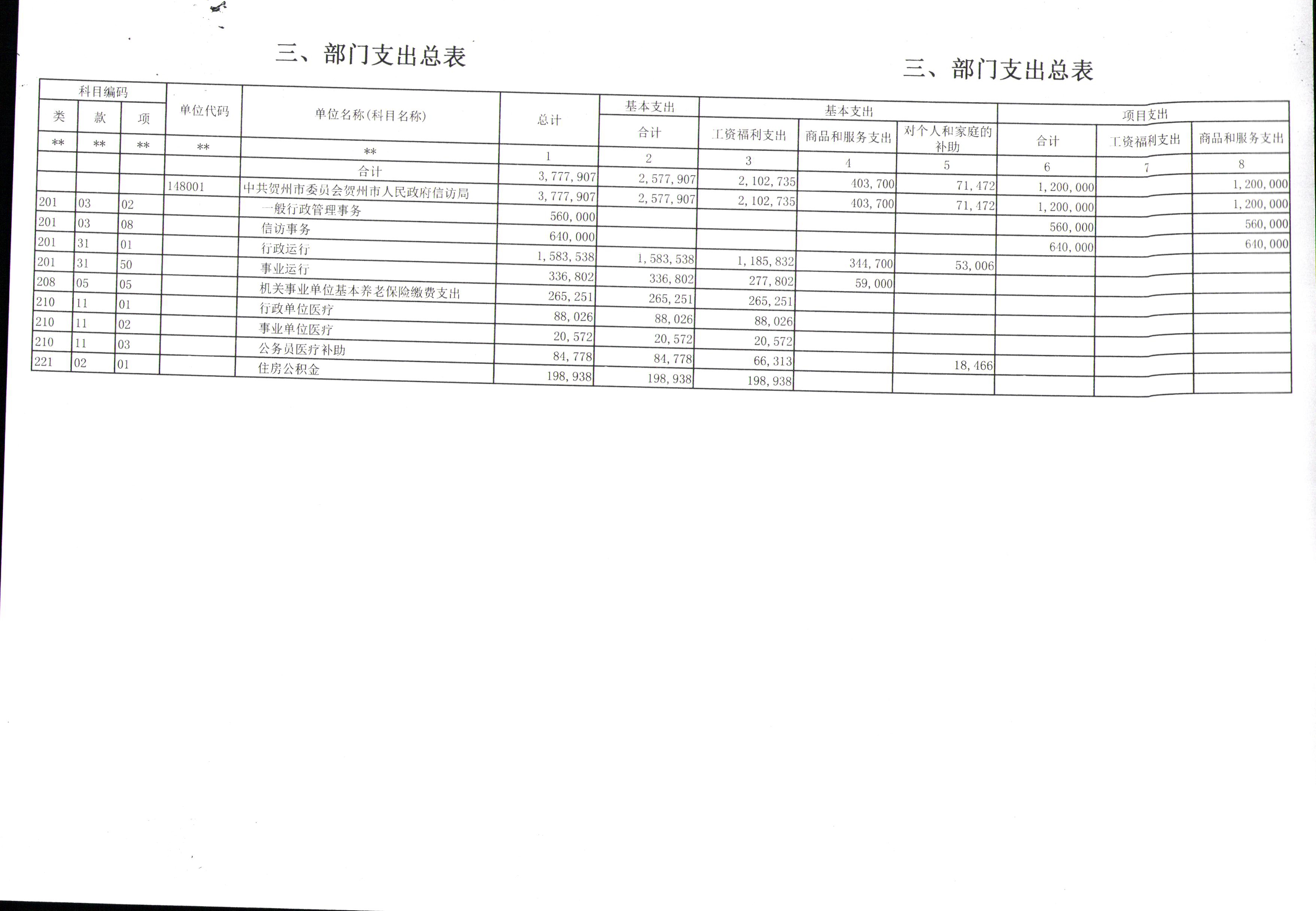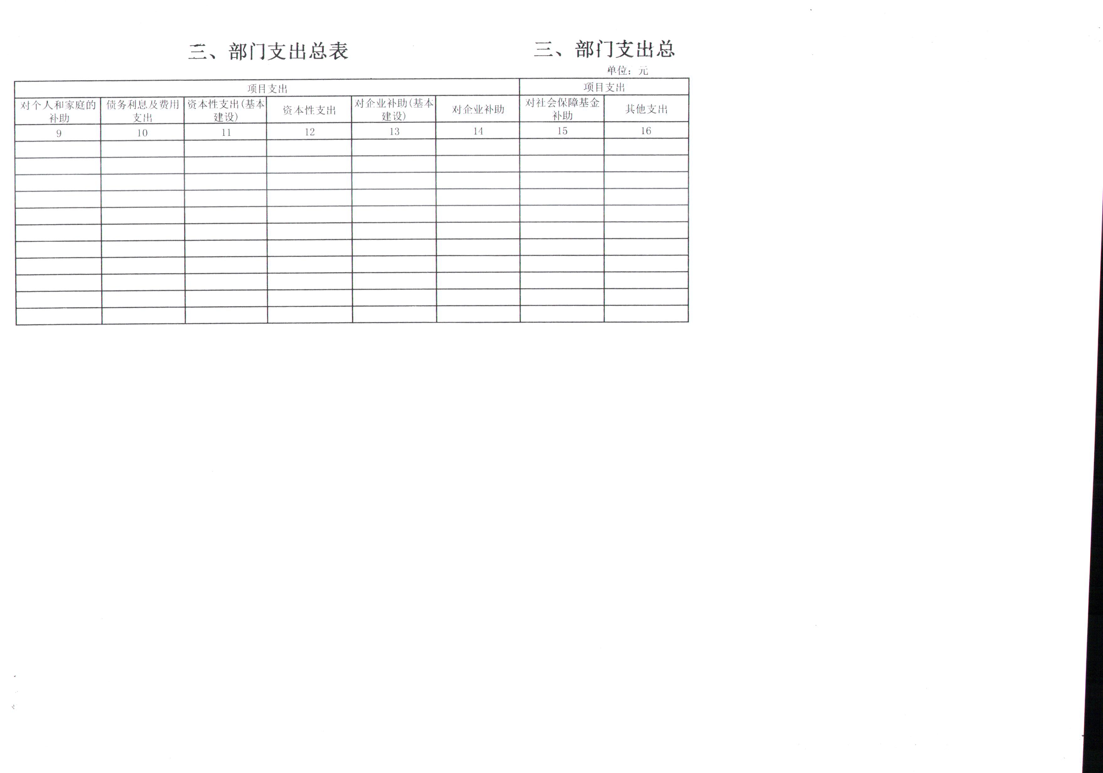 三、部门支出总表