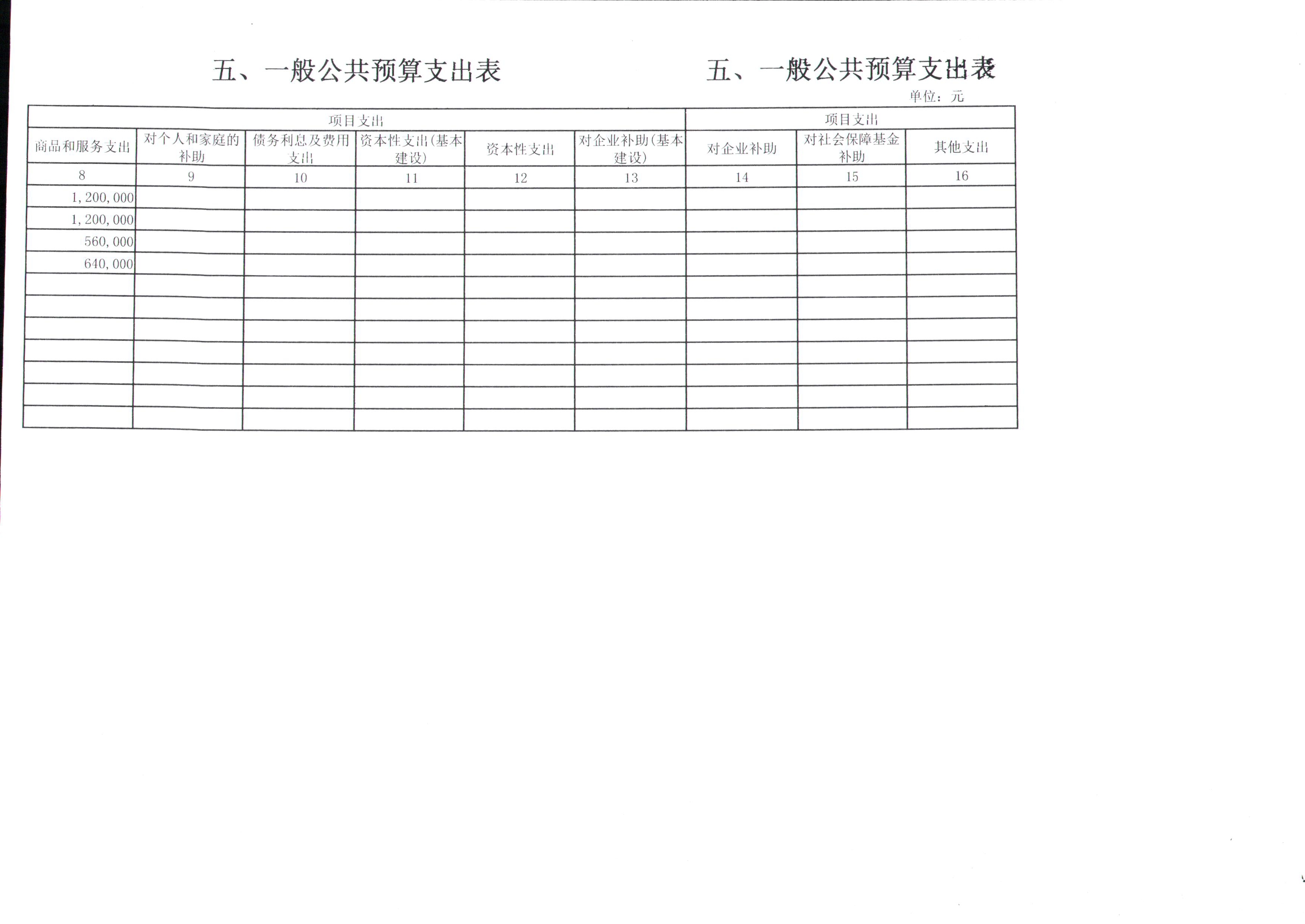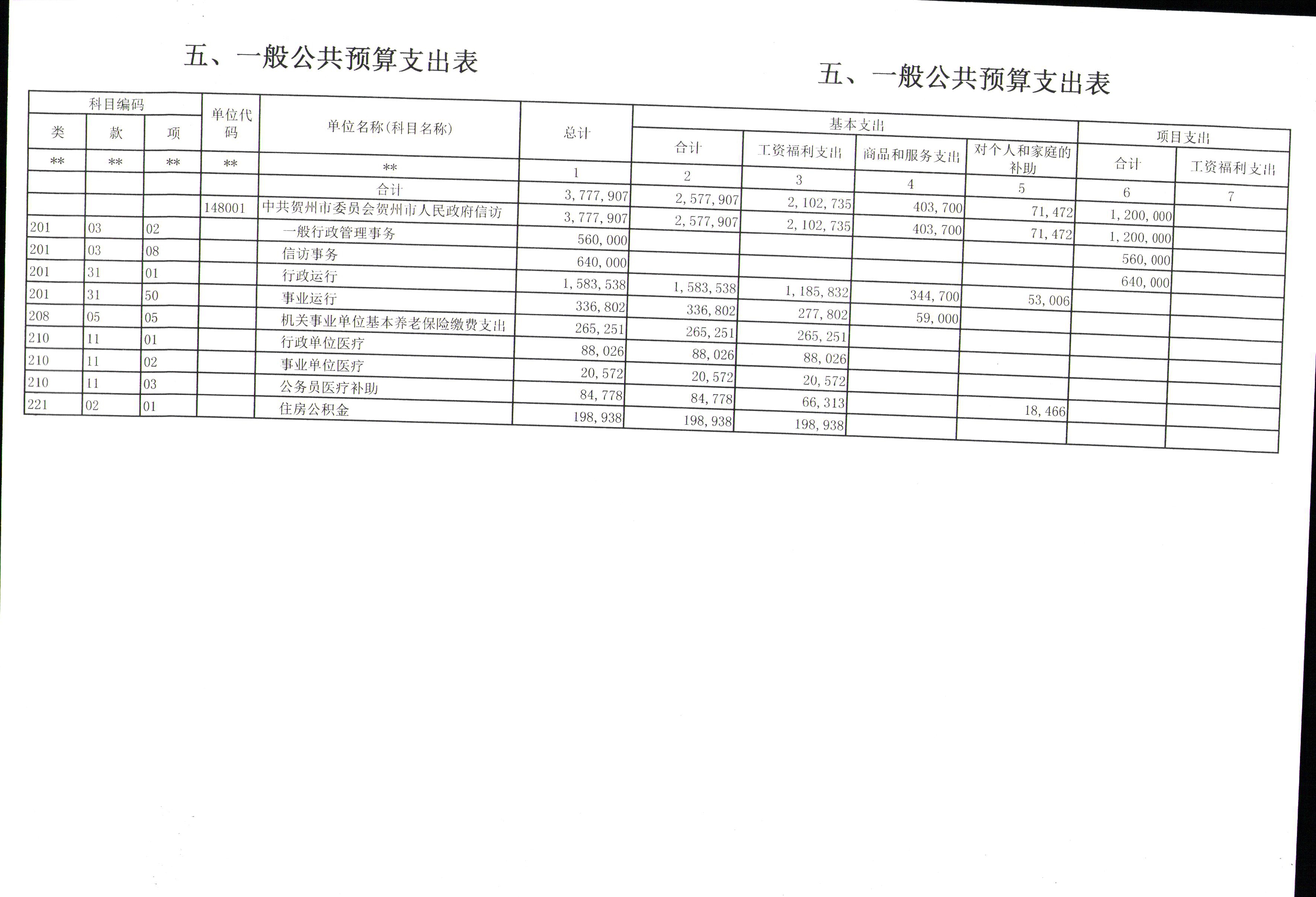五、一般公共预算支出表