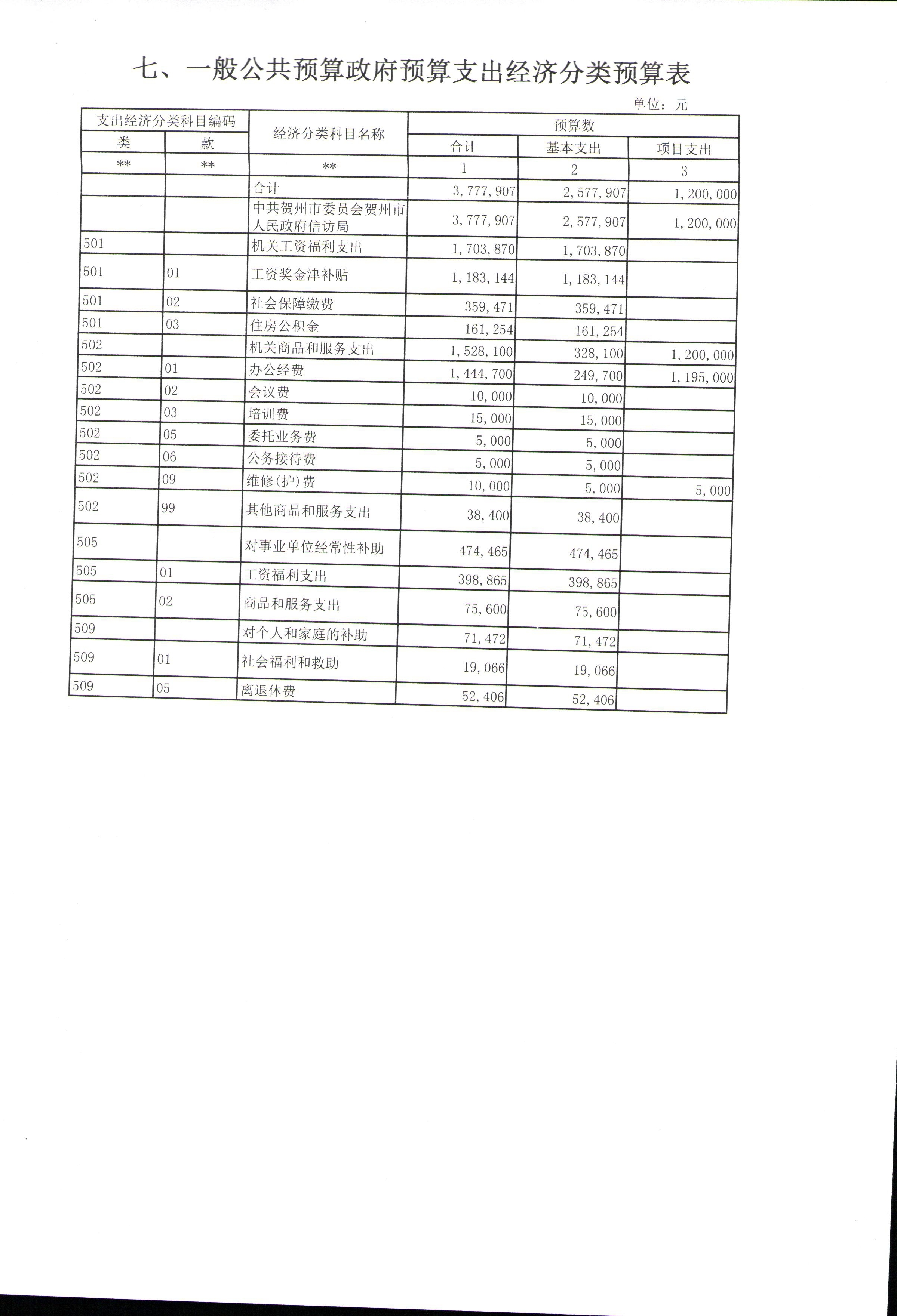 七、一般公共预算政府预算支出经济分类预算表