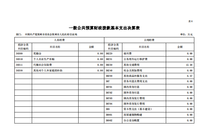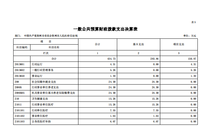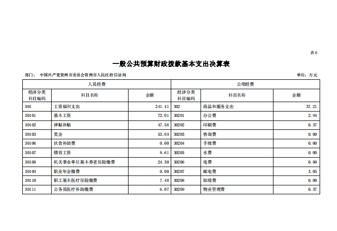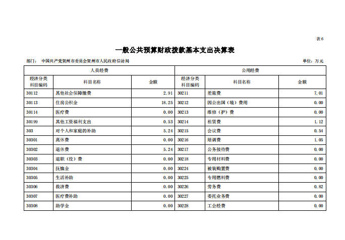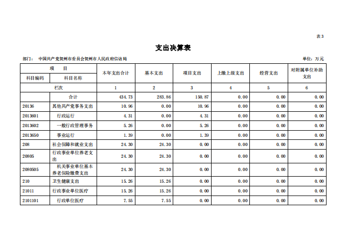 贺州市信访局2020年部门决算