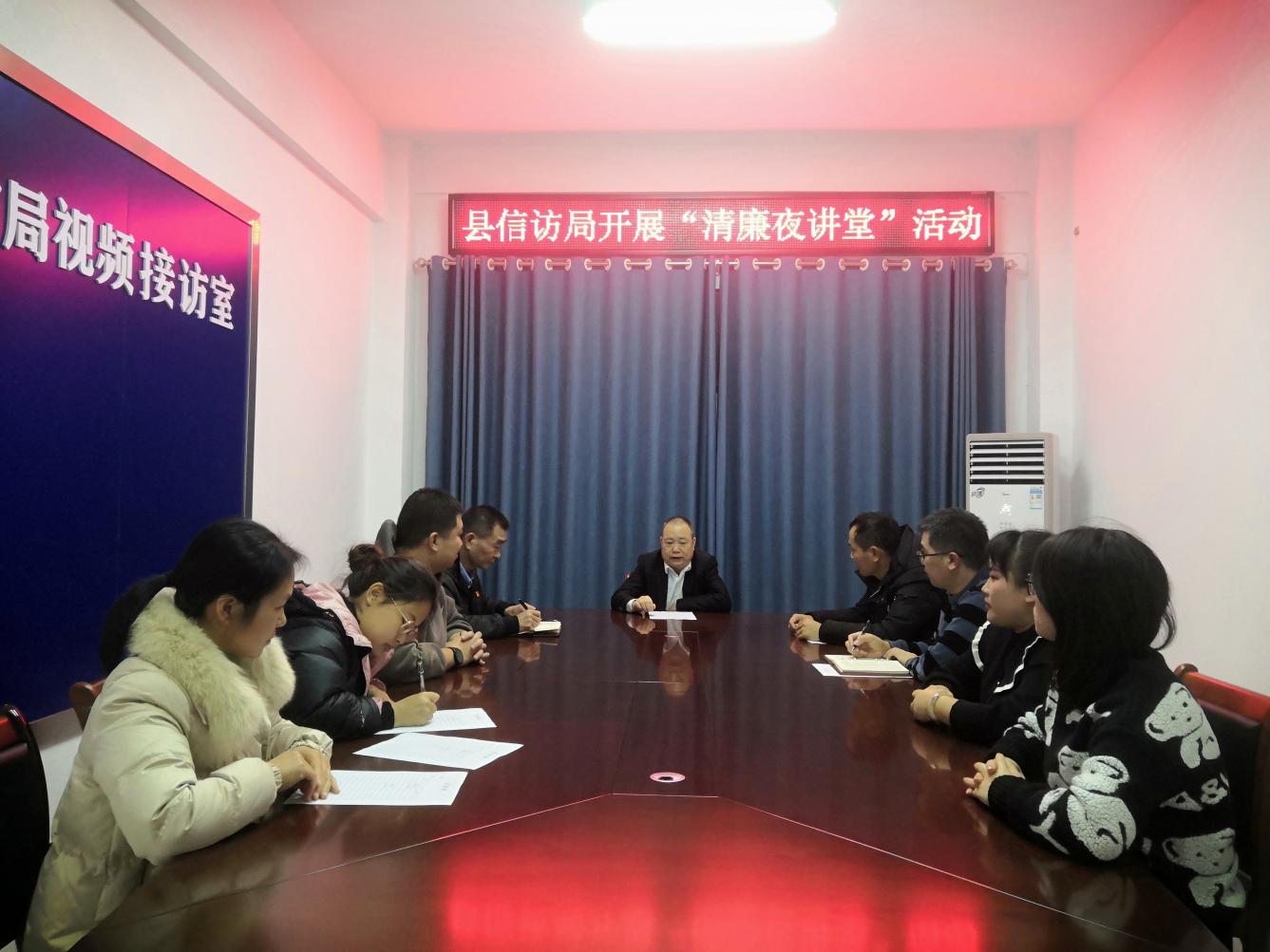 2022年12月9日晚,县信访局组织召开“清廉夜讲堂”活动。全体干部职工及家属参加。