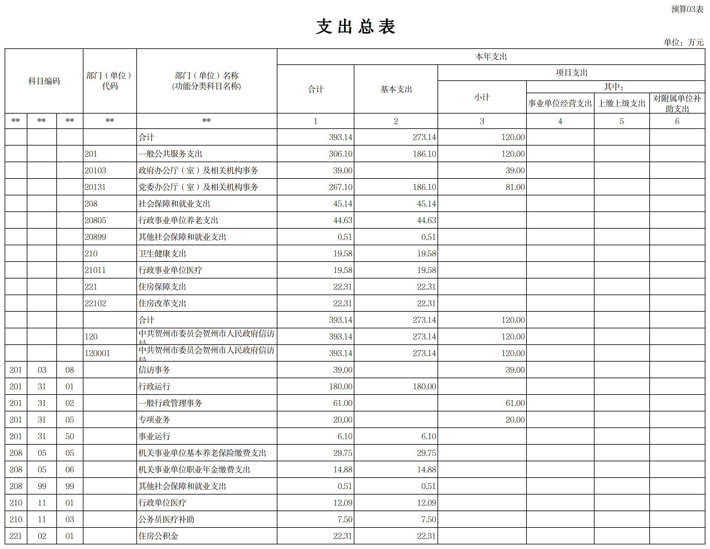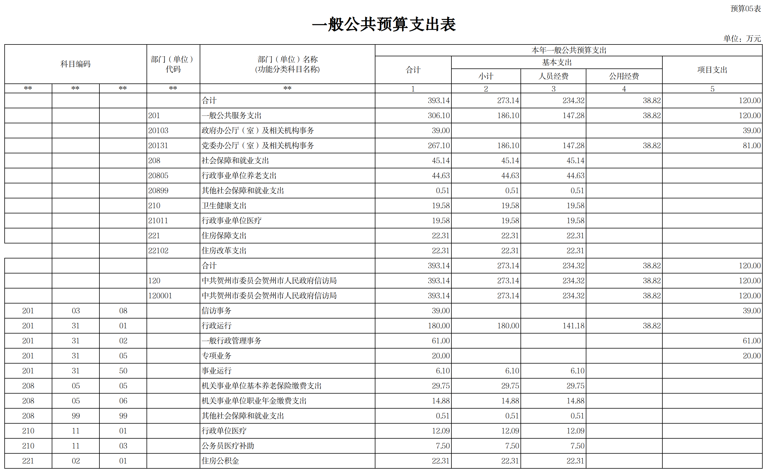 第五部分:贺州市信访局2023年单位预算公开报表