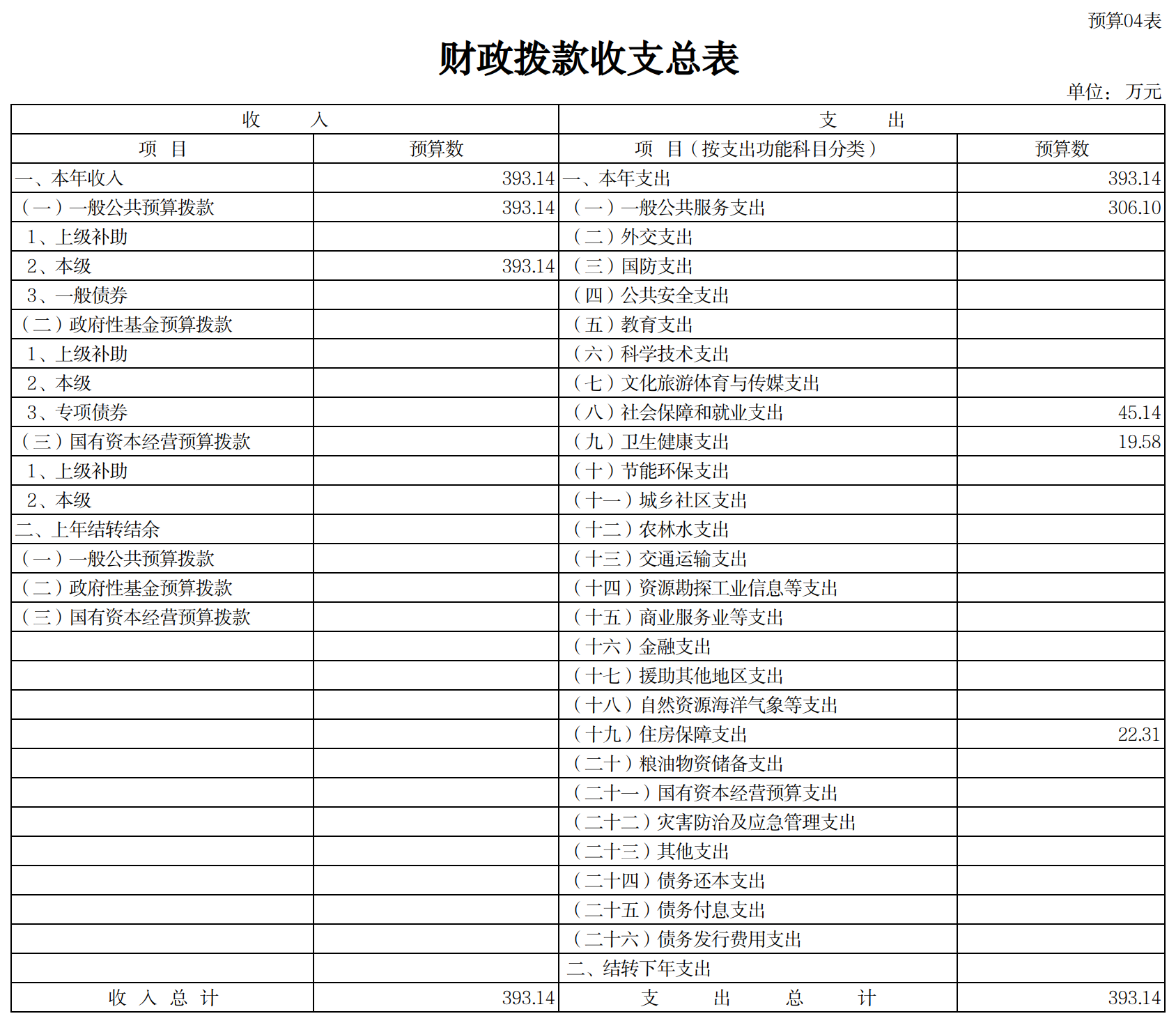2023年部门预算总收入393.14万元,同比增加1.91万元,增长0.49%,其中: