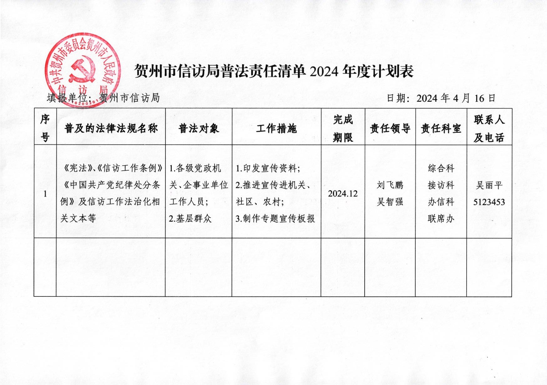 贺州市信访局普法责任清单2024年度计划表